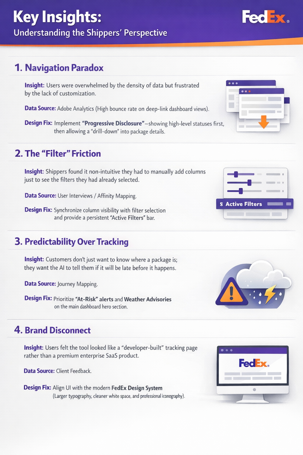 Being tasked with collaborating with other teams consisting of only developers within FedEx posed a unique challenge, requiring adaptability, time management and effective communication to ensure alignment with their design objectives and timelines.